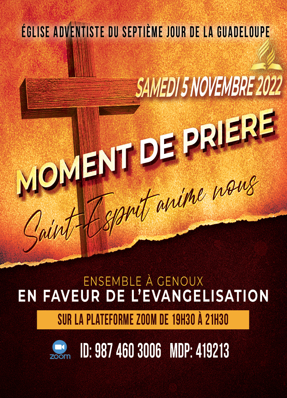Afin que Dieu déverse sur nous, son Esprit, d’une manière extraordinaire, en cette période d’évangélisation publique du mois de novembre, un moment de prière est organisé par l’Eglise Adventiste du Septième Jour de la Guadeloupe.